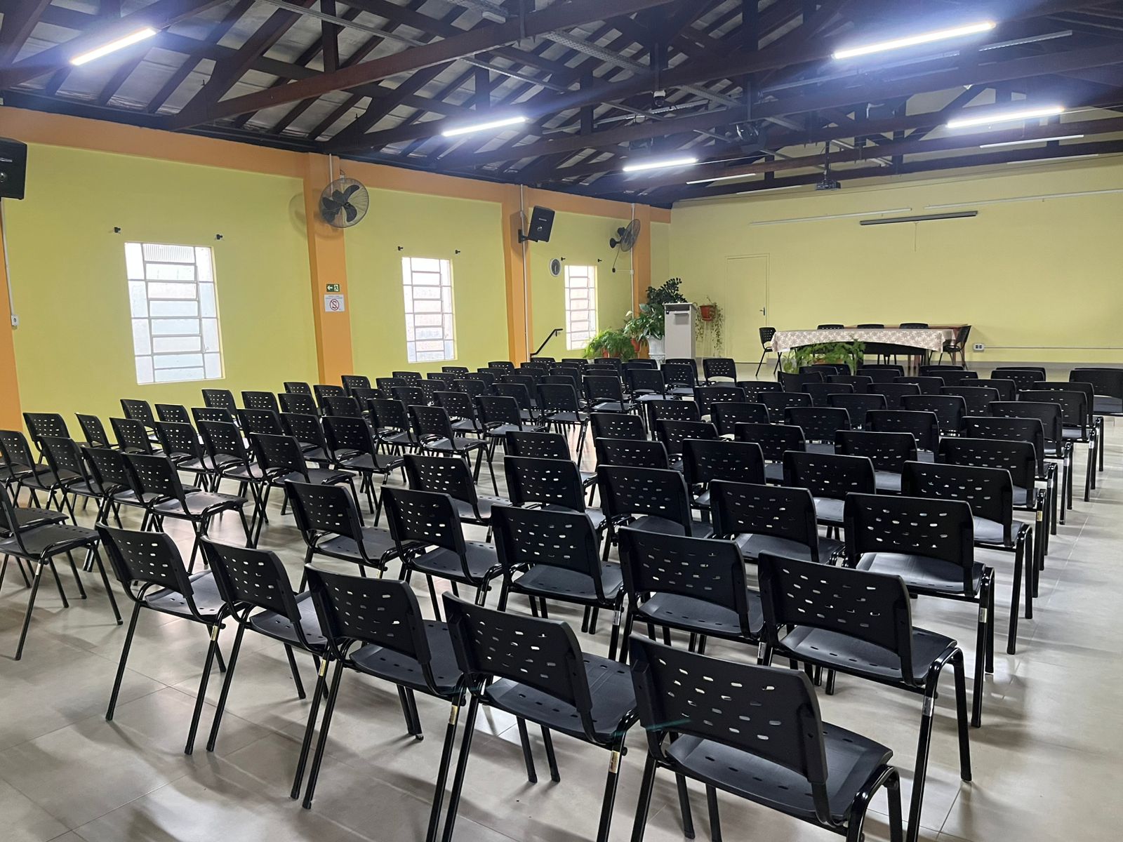 Utilizado para palestras, aulas, cursos, atendimentos assistenciais, refeitório e eventos beneficentes.
